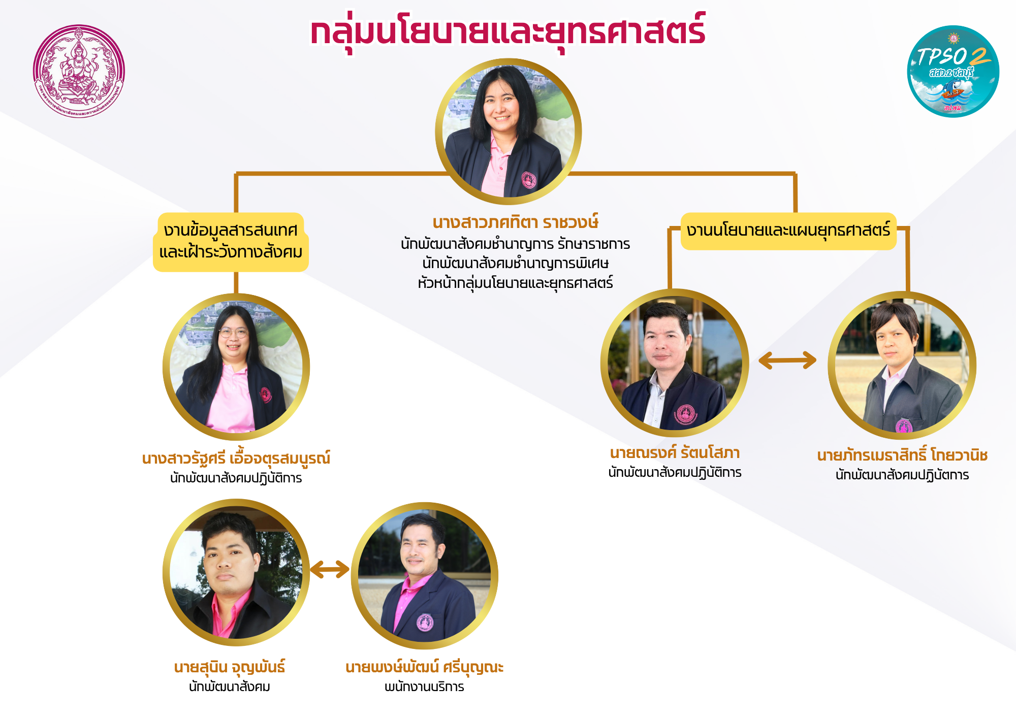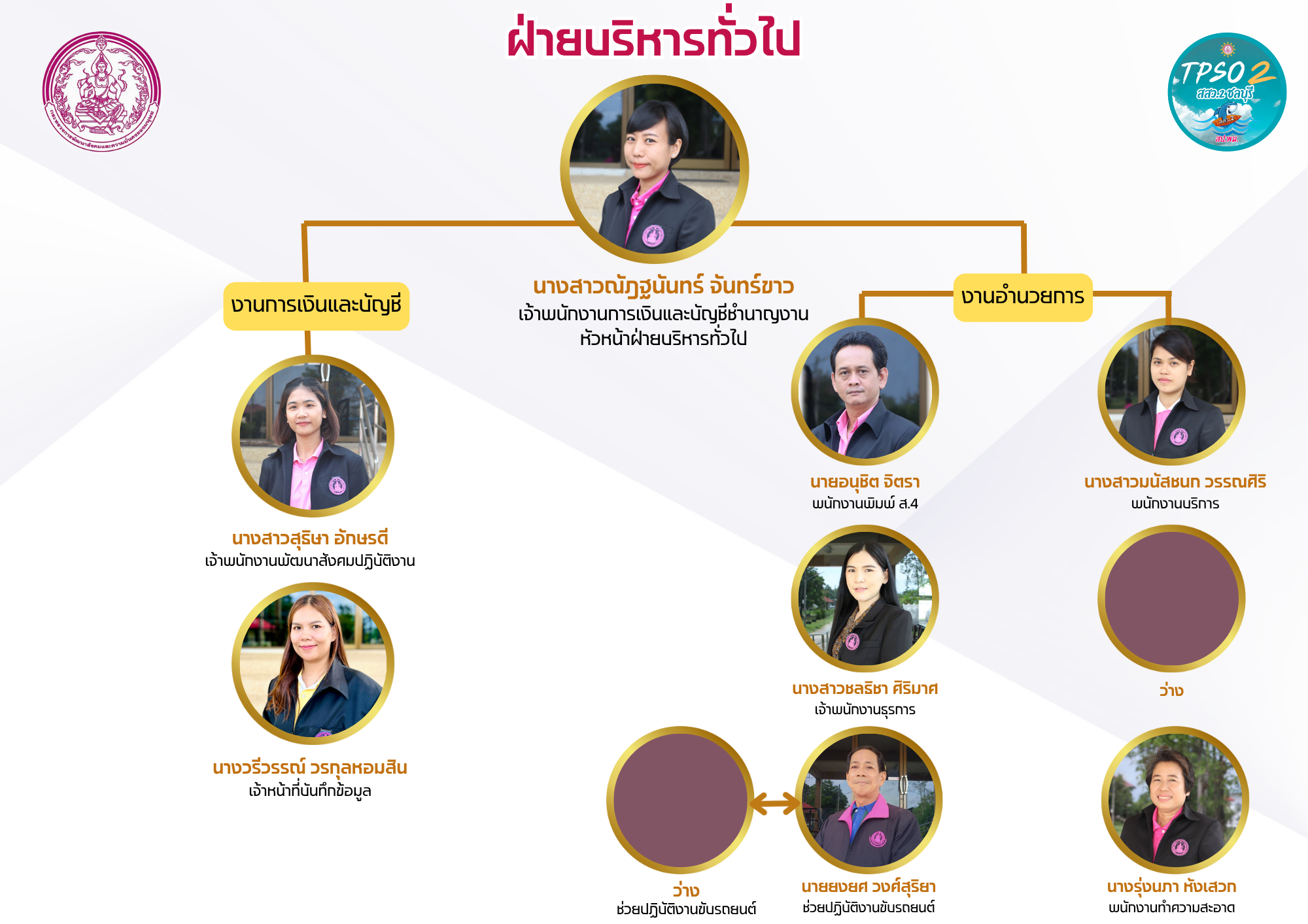 อัตรากำลังเจ้าหน้าที่ อัตรากำลังสำนักงานส่งเสริมและสนับสนุนวิชาการ 2 ชลบุรี นางศิรทิพย์ ภาศรีสมบัติผู้อำนวยการสำนักงานส่งเสริมและสนับสนุนวิชาการ 2 ฝ่ายบริหารทั่วไป กลุ่มนโยบายและยุทธศาสตร์ กลุ่มการวิจัยและการพัฒนาระบบเครือข่าย ฝ่ายบริหารทั่วไป กลุ่มนโยบายและยุทธศาสตร์ กลุ่มการวิจัยและการพัฒนาระบบเครือข่าย